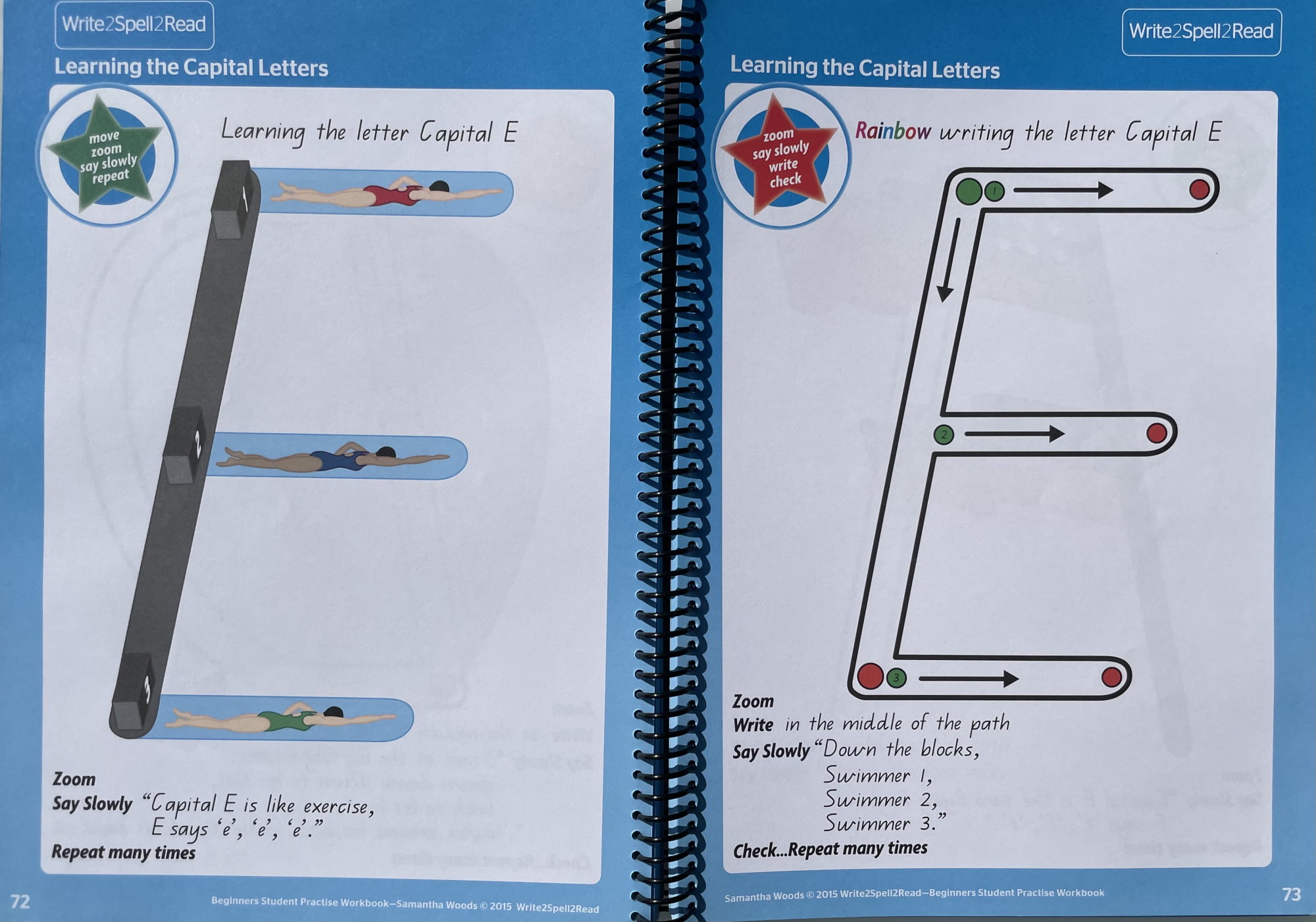 Lowercase letters are taught first in ‘Letter Groups’ based around similar handwriting movements and ‘Writing Talk,’ followed by capitals in sequence.Practice is fun using many coloured pencils, ‘Rainbow Writing’, or using the transparent wipe clean overlay sheet included, with a whiteboard marker. Individual ownership of this Practice Workbook accelerates fast, automatic handwriting and literacy success. Beginners Handwriting includes a Handwriting Overview and Scope and Sequence, as well as Learning Method Instructions.