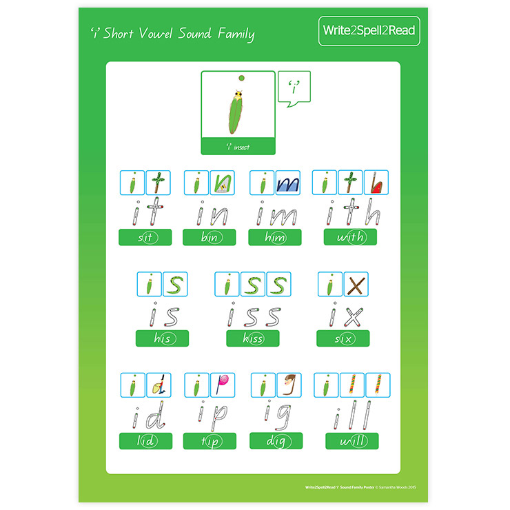 'i' Short Vowel Sound Family Poster A3 Size - Write2Spell2Read
